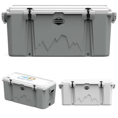 Gear up for your next adventure with the Cordova Coolers 128 QT Basecamp Class™ Hard Cooler. Designed to keep your refreshments icy cold, this cooler is built from rugged 250G Knitted Polyester, making it perfect for any harsh weather or terrain. The set comes neatly packed in a convenient carrying bag for easy transport. Note that EQP does not apply to custom orders, reflecting the unique customization options available. While random samples are unavailable, our commitment to quality ensures your cooler will impress on any outdoor excursion. Discover promotional excellence with the Cordova Coolers 128 QT Basecamp Class™ Hard Cooler at SuperiorPromos.com.