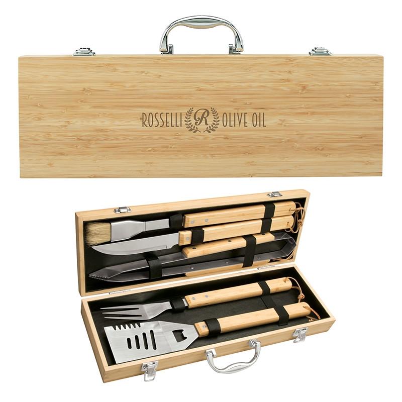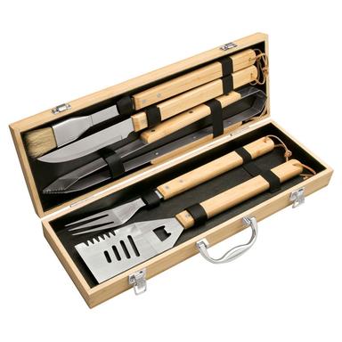 The Cleveland 5-Piece Bamboo BBQ Set from SuperiorPromos is a must-have for any grilling enthusiast. This premium set includes a serrated-edge spatula with a built-in bottle opener, a BBQ fork, tongs, a knife, and a basting brush, all crafted from durable bamboo and stainless steel. The eco-friendly bamboo handles provide a comfortable grip, ensuring you can grill with precision and ease. Whether you're cooking for a family gathering or a summer party, this set has everything you need to impress your guests.
